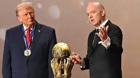 Gianni Infantino fue el encargado de otorgarle el trofeo al Presidente de Estados Unidos durante el sorteo…